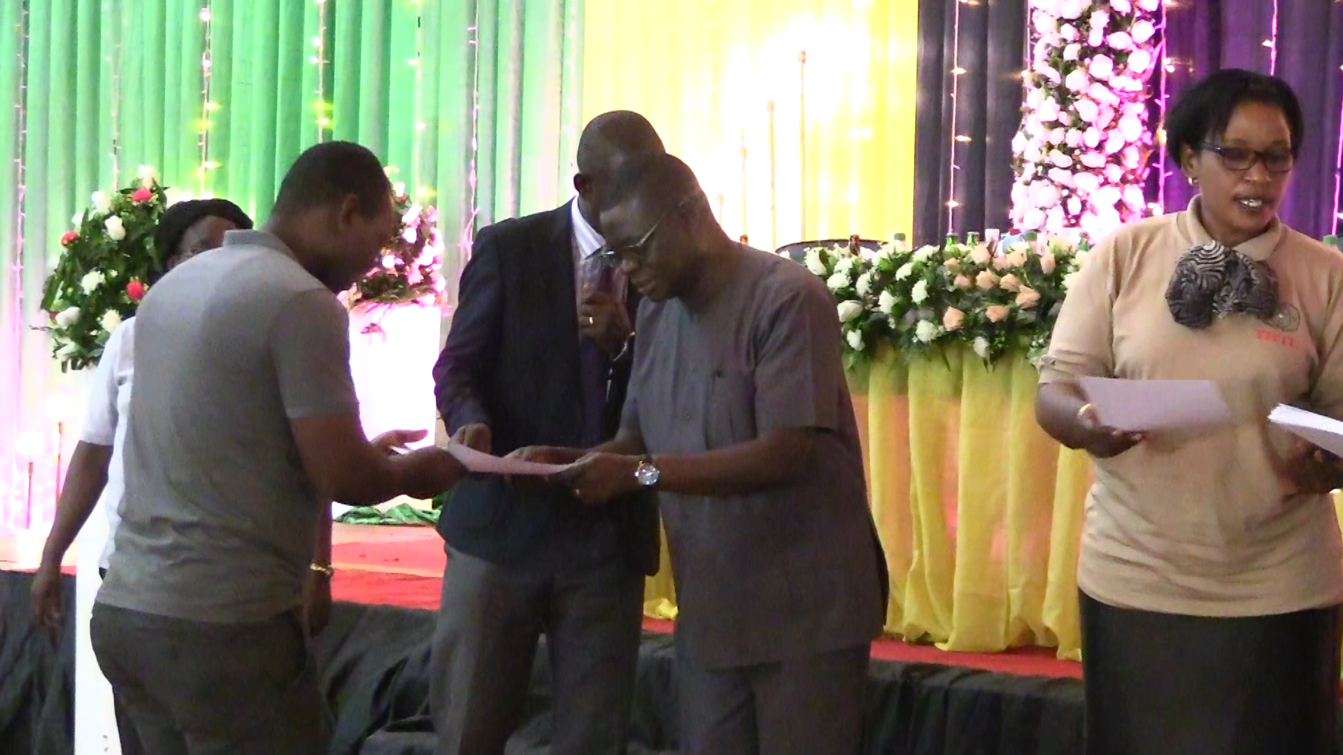 One of the staff receiving a 'best staff' certificate from the Vice Chancellor