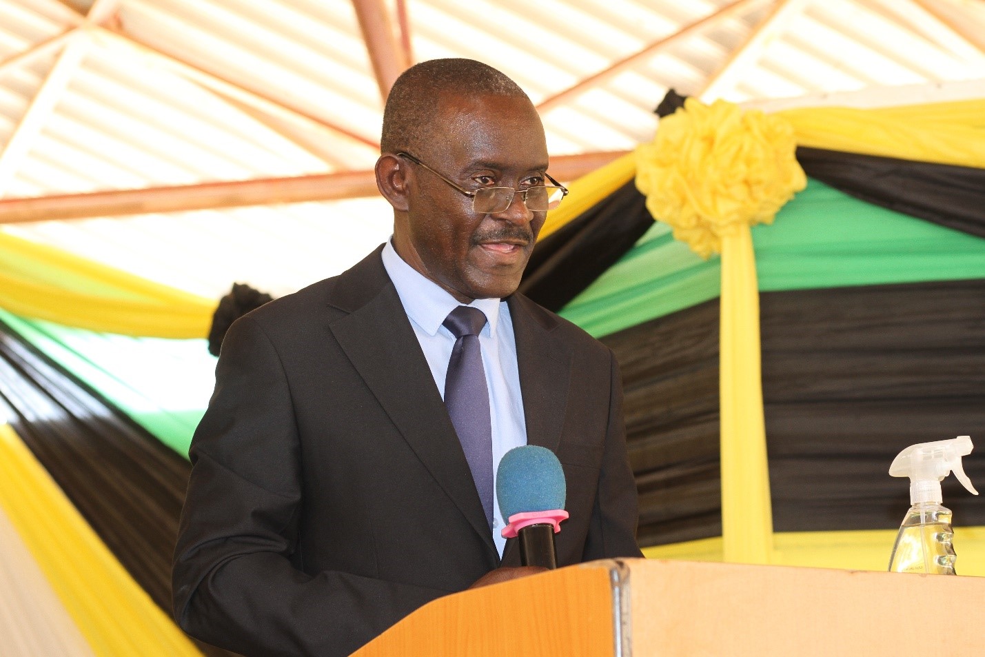 Naibu Makamu Mkuu wa Chuo upande wa Mipango, Utawala na Fedha Prof. Amandus Muhairwa akizungumza na wanafunzi wa mwaka wa kwanza wa mwaka wa masomo 2021/2022